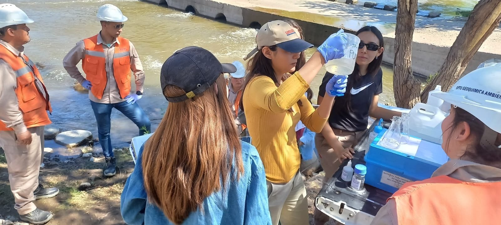 Lo hicieron acompañadas por las profesoras Adriana Vega (Geología Ambiental) y Miriam Cisternas (Geoquímica Ambiental), con la supervisión y apoyo logístico de técnicos y personal de la Dirección Provincial de Gestión Ambiental Minera (DiPGAM) del Ministerio de Minería. En el lugar, presenciaron la presentación y muestra de actividades de monitoreo de calidad de agua que realiza el organismo provincial.