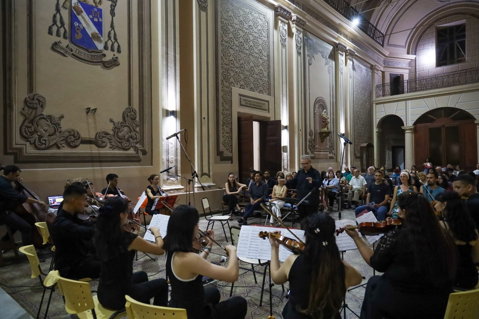 La imponente Capilla del Seminario Diocesano Nuestra Señora del Valle-CeCuld fue el escenario donde la Orquesta de Cámara de Chilecito ofreció esta noche el concierto dedicado a la Virgen del Valle, en el marco de las festividades en su nombre.
