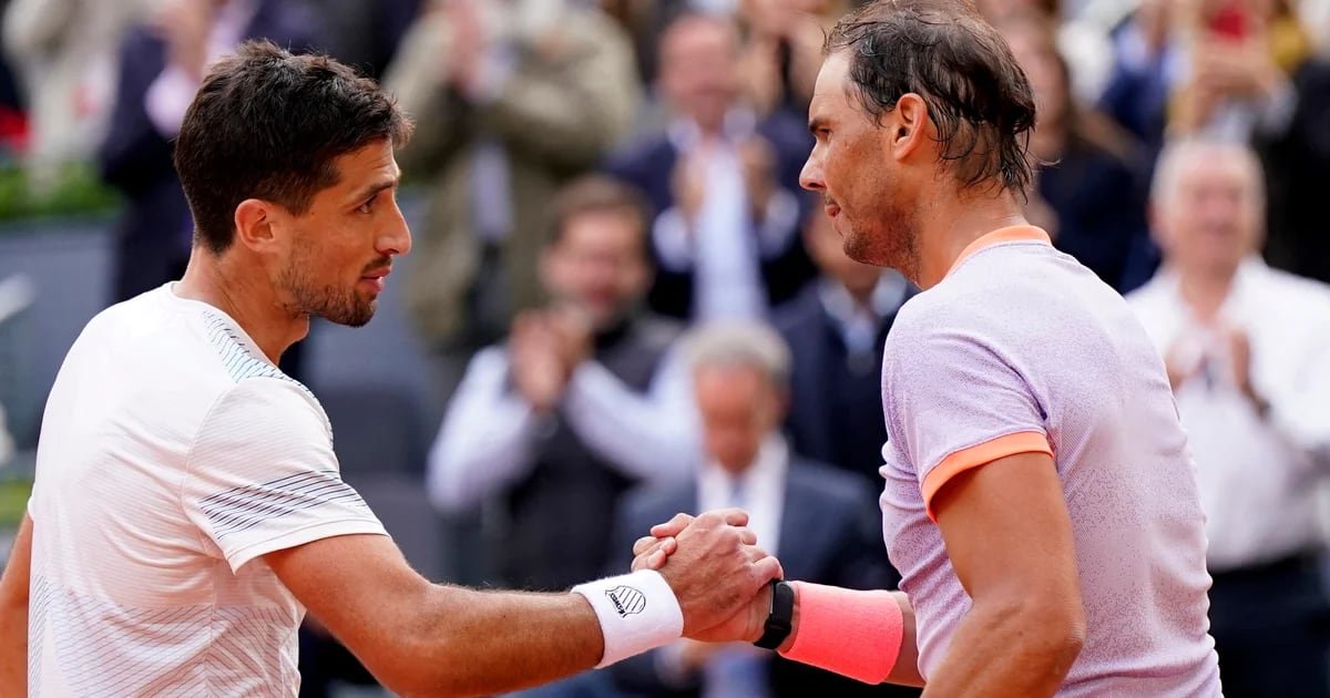 Pedro Cachin le dio batalla a Rafael Nadal en un vibrante partido del Masters 1000 de Madrid que terminó cayendo para el lado del español en su despedida de este reconocido certamen en su país. La estadía de la leyenda de tenis no perduró mucho más, porque el actual 31° del ranking Jiri Lehecka terminó doblegando a Rafa en octavos de final. Una de las imágenes más significativas de este evento se dio con lo hecho en el partido previo por el argentino: le pidió de regalo su camiseta.