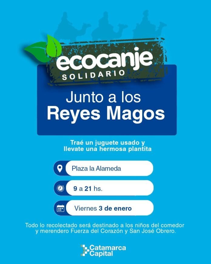 Este viernes 3 de enero, la Municipalidad de la Capital de Catamarca invita a toda la comunidad a participar del Trueque Solidario junto a los Reyes Magos, un evento que busca llevar alegría a los niños de nuestra ciudad. La actividad se realizará en la Plaza La Alameda, desde las 9 de la mañana hasta las 21hs