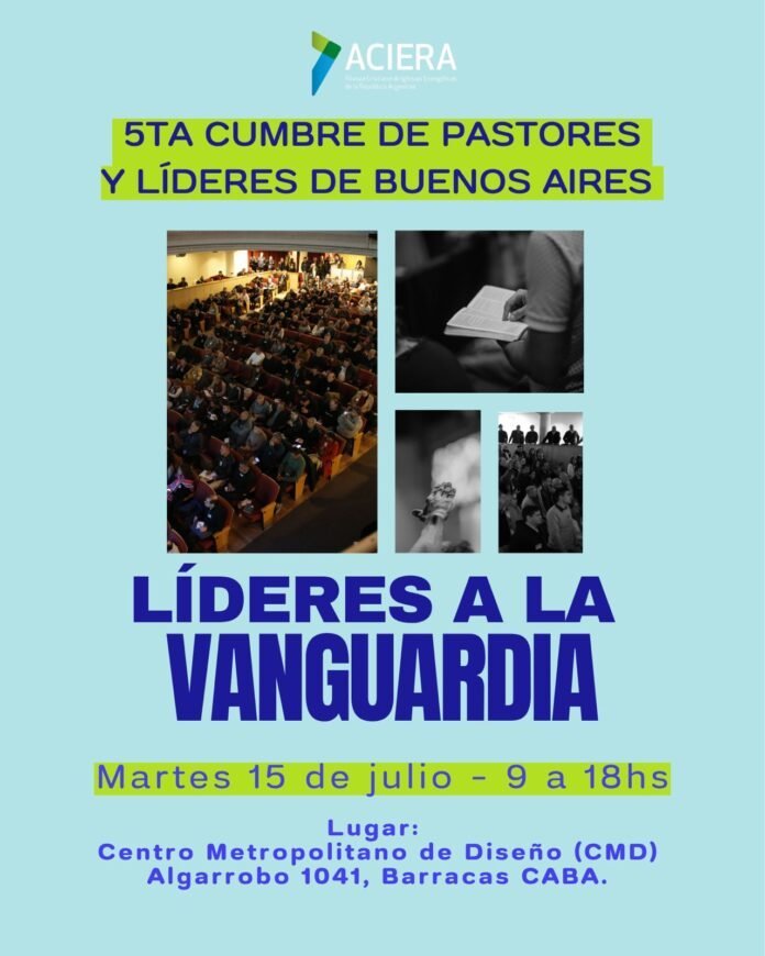 Bajo el lema de la unidad y la visión compartida, ACIERA (Alianza Cristiana de Iglesias Evangélicas de la República Argentina) convoca a una nueva edición de la Cumbre de Pastores y Líderes de Buenos Aires, un espacio pensado para fortalecer el liderazgo pastoral y brindar herramientas para la misión en los tiempos actuales.