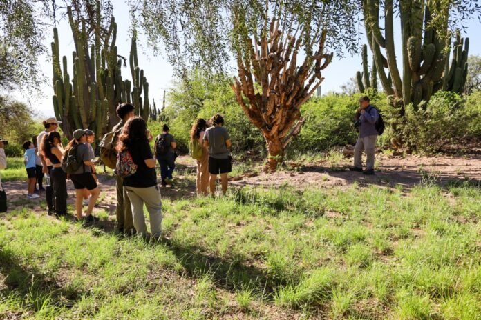 Tras diferenciar el cardón moro con el denominado achuma que generalmente se usa en rituales andinos, el conocedor de la biodiversidad local fue relatando la importancia de las plantas características que fueron encontrando a su paso: algarrobos, quebracho blanco, chañares o la jarilla negra, de gran importancia, por ejemplo, para orientarse en el caso de perderse en plena naturaleza extrema. El paseo también permitió observar numerosas especies de aves, lagartos e interacciones del ecosistema natural como hermosos helechos creciendo entre las pircas.